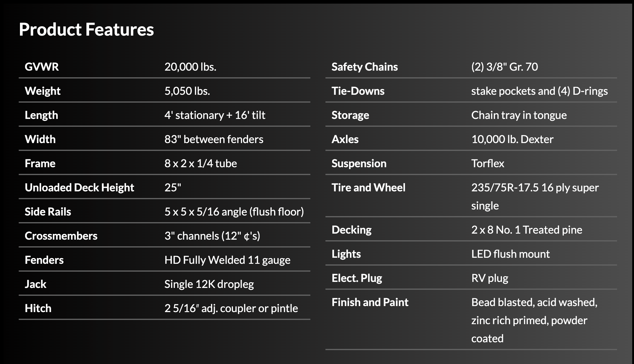 *This particular trailer has a 6' stationary deck and a 16' tilt section.